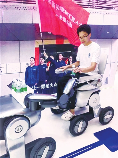 “我坐着载人轮足机器人绕了一圈,感觉很舒适、平稳,这对老年人和残疾人来说,是一个很好的产品。”重庆职业技术学院学生甯俊尧体验一番后忍不住竖起大拇指为广东的机器人产品点赞。